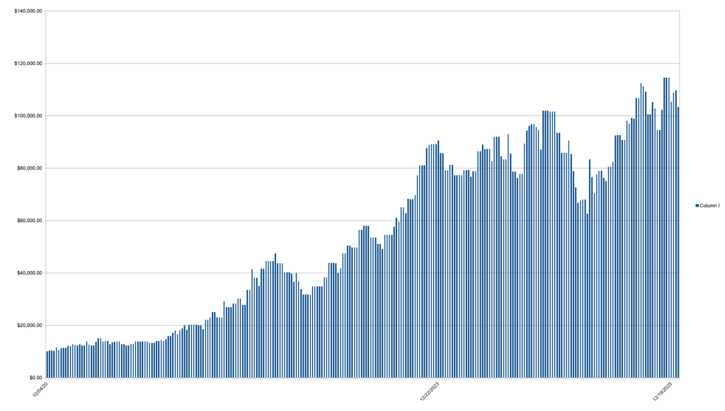 The following chart represents our performance for our weekly calls on the NASDAQ-100 QQQs from October 2020 to September 30, 2025.